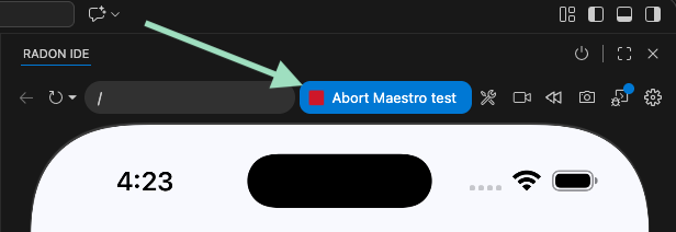 When a flow is started, an indicator button appears on the Radon toolbar. Click this button to abort the test, exiting the Maestro process gracefully.
